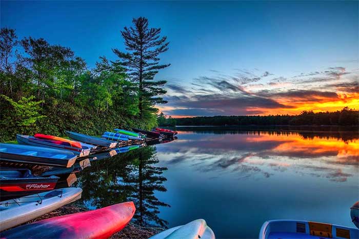 Afternoons might mean a walk to one of the private beaches (if you’ve secured temporary club access) or simply exploring the creek and woods around your cabin rental. Some families bring kayaks. Others bring books. Some bring skis. All are correct.