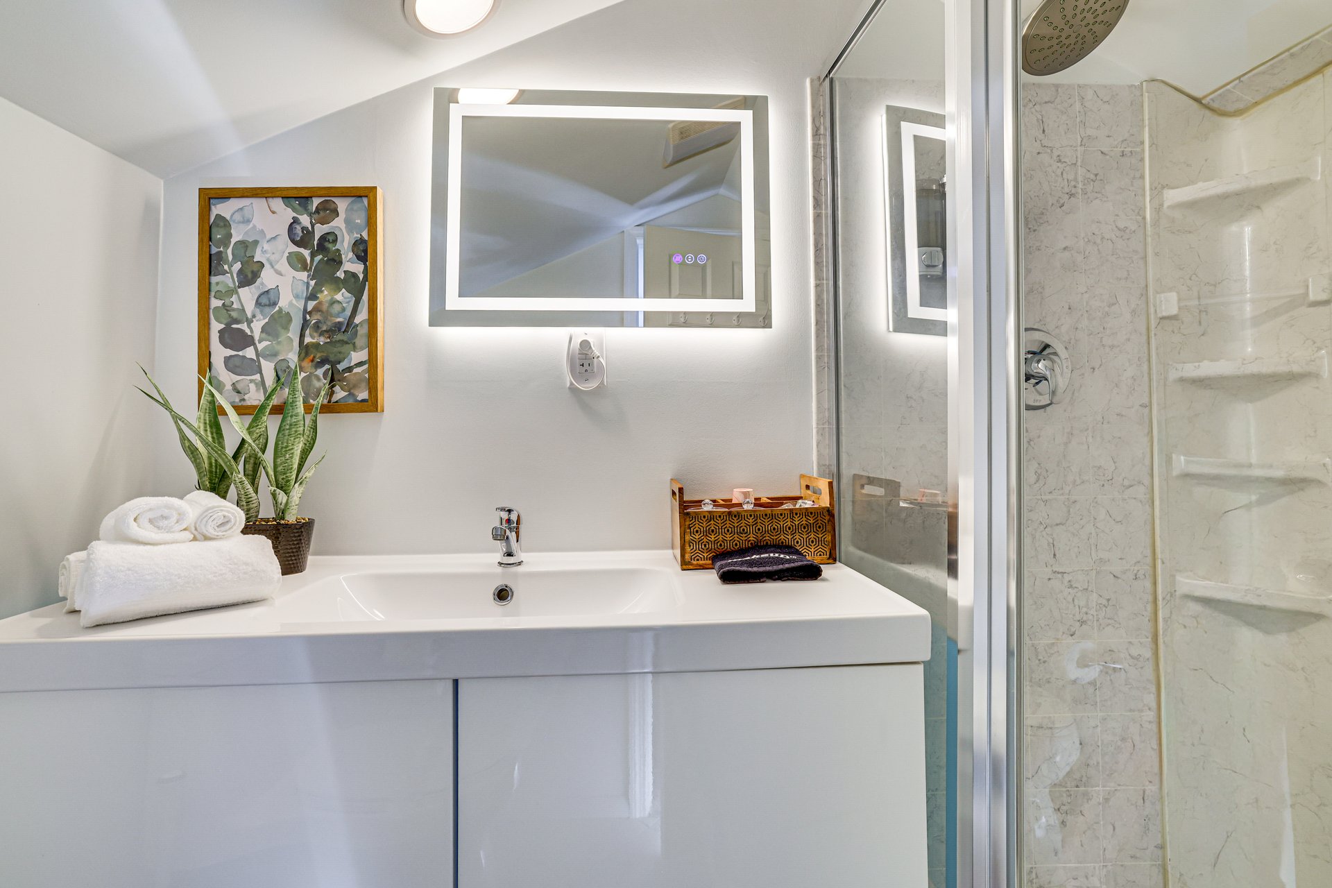 - En-suite bathroom w/ corner shower (Bedroom 2)